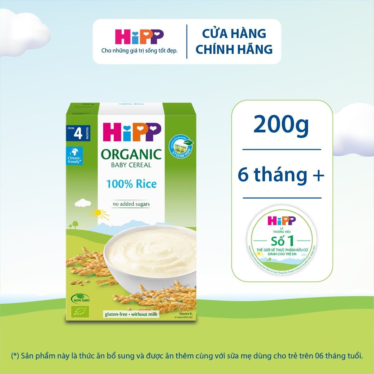 HiPP - thương hiệu thực phẩm hữu cơ cho trẻ em số 1 thế giới (*) đến từ Đức. HiPP sở hữu các dòng sản phẩm từ sữa công thức đến sản phẩm bột ăn dặm, túi trái cây...Không chỉ mang nguồn dinh dưỡng sạch lành từ thiên nhiên tới hàng triệu trẻ em toàn cầu, HiPP còn luôn kiên định với sứ mệnh nâng niu giữ gìn sự vốn có của tự nhiên để xây dựng một hệ sinh thái bền vững cho thế hệ mai sau.