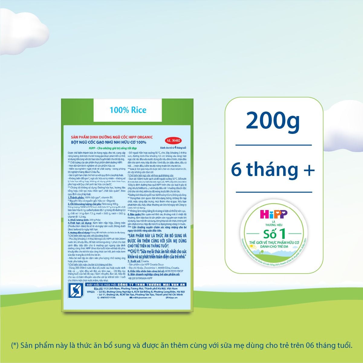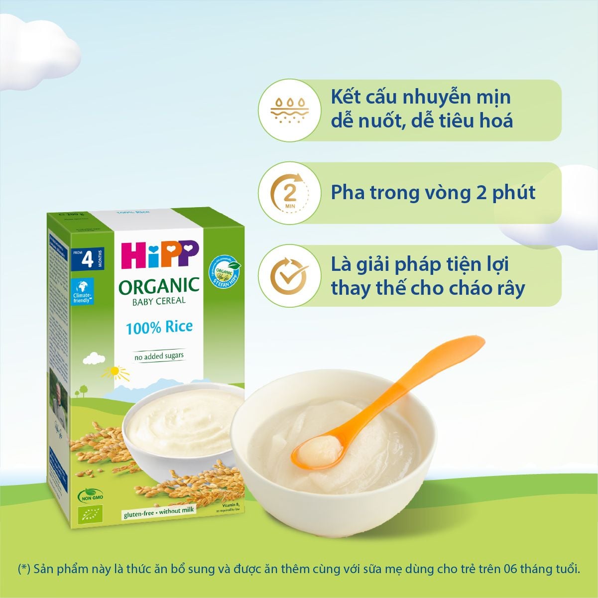 “SẢN PHẨM NÀY LÀ THỨC ĂN BỔ SUNG VÀ ĐƯỢC ĂN THÊM CÙNG VỚI SỮA MẸ DÙNG CHO TRẺ TRÊN O6 THÁNG TUỔI.”