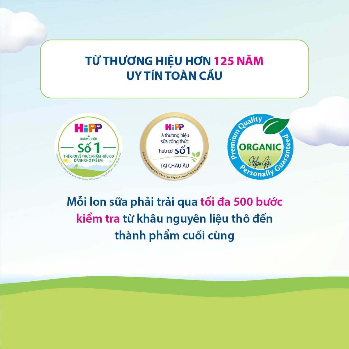 - Con dấu Organic HiPP đảm bảo chất lượng cao nhất và khắt khe hơn các quy định từ tiêu chuẩn hữu cơ của Liên minh Châu Âu.